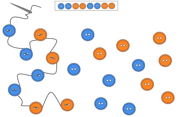 Zadanie: połącz guziki „linią/nitką” według wzoru.