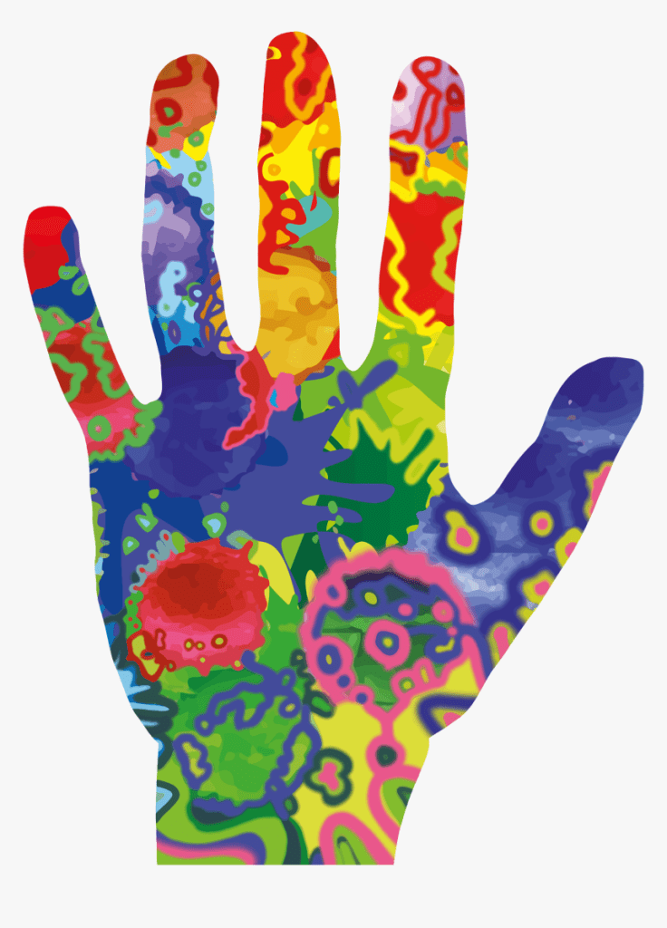 - malowanie dłońmi i stopami (farbę zmieszaj z innymi materiałami, np. kaszą, piaskiem, ryżem itp. Stwórzcie też własną „farbę” z kisielu, galaretki)