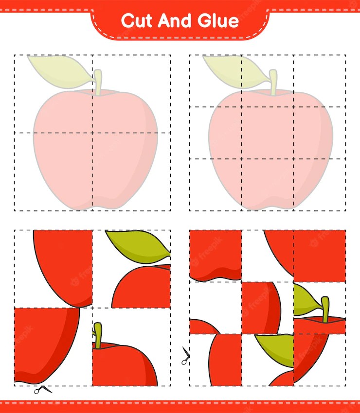 – układa jabłko z czterech równych części, doskonali spostrzegawczość wzrokową;