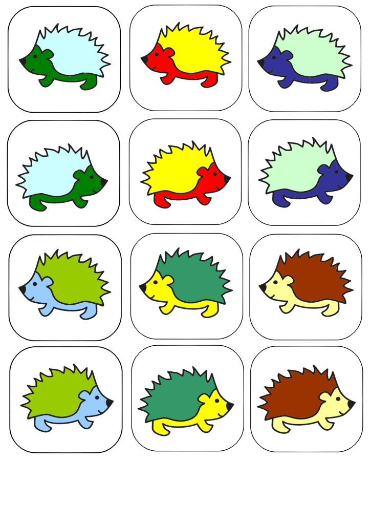 Wytnij jeże i dobieraj je według kierunków i kolorów grając w Jeżowe Memory.