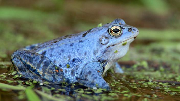Żaby moczarowe na czas godów wręcz się stroją: skóra samców przybiera w tym czasie neonowo niebieski kolor, by przyciągać wzrok samic i je kusić. Ten przepiękny lazurowy odcień to efekt nagroma- dzenia się limfy (płynu ustrojowego) w podskórnych zatokach limfatycznych. Po zakończeniu godów błękit znika.