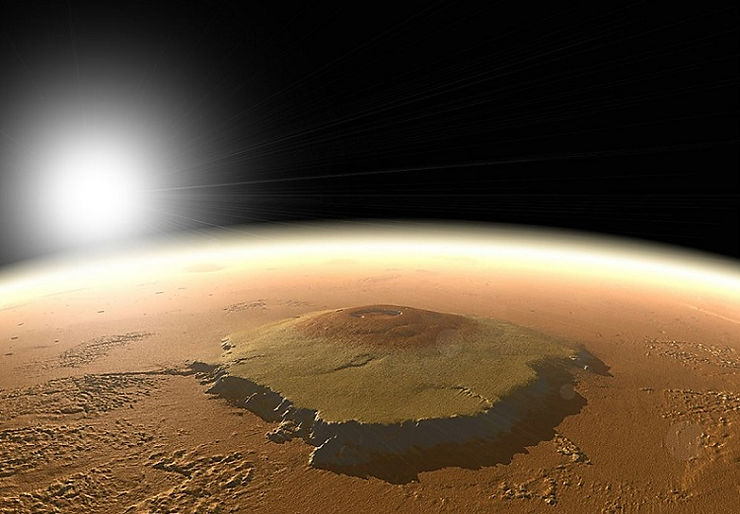 2. Olympus Mons – wygasły wulkan znajdujący się na Marsie mierzy około 26 000 metrów wysokości, to trzy razy więcej niż najwyższa góra Ziemi! Olympus Mons jest wygasłym wulkanem tarczowym, co oznacza, że powstał w wyniku powolnego i długotrwałego wycieku lawy. Dlaczego jest tak wysoki? Naukowcy twierdzą, że powodem jest brak płyt tektonicznych na Marsie. To pozwoliło wypływać gorącej lawie przez czas o wiele dłuższy, niż przeciętna aktywność wulkanu na Ziemi.