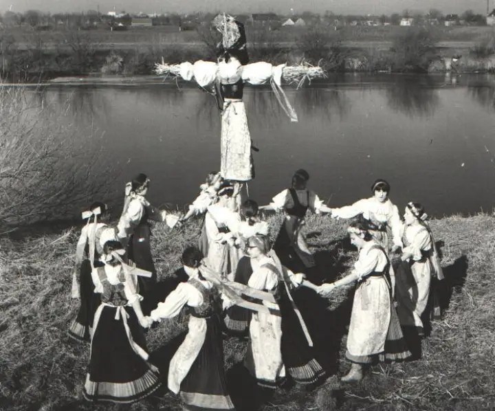 – Topienie lub palenie kukły – symbolizującej Marzannę, czyli boginię zimy i śmierci.