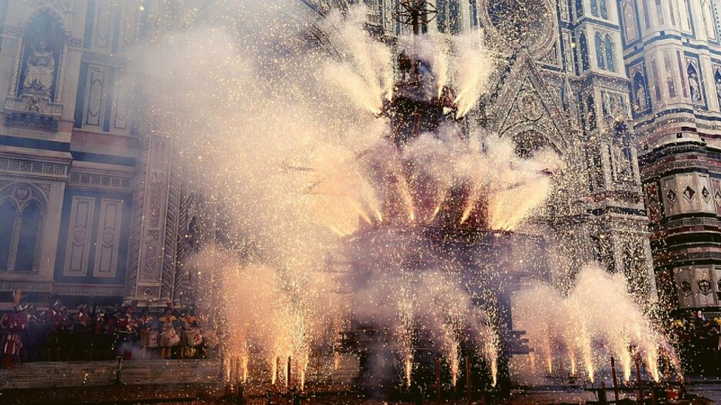 Scoppio del Carro (eksplozja wózka) we Florencji jest praktykowana od ponad 300 lat i przyciąga tłumy zainteresowanych. Wielkanocna procesja rozpoczyna się od ciągnięcia załadowanego fajerwerkami Brindellone (zabytkowego, dziewięciometrowego wózka) przez dwa białe woły. Członkowie rodziny Pazzi, duchowni i urzędnicy miejscy niosą w tym samym czasie święty ogień stworzony wcześniej za pomocą specjalnych kamieni. Na koniec arcybiskup Florencji zapala Colombinę (rakietę w kształcie gołębia), która dociera do wózka i rozpoczyna pokaz fajerwerków.