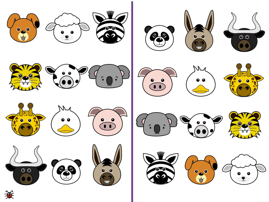 Poniżej propozycje ćwiczeń do wykonania w szkole, w domu lub gdziekolwiek. Polegają one na wskazywaniu jednocześnie dwóch takich samych rysunków po obu stronach równocześnie prawą i lewą ręką. Ćwiczenia można połączyć z wypowiadaniem na głos wskazywanych słów (artykulacja).