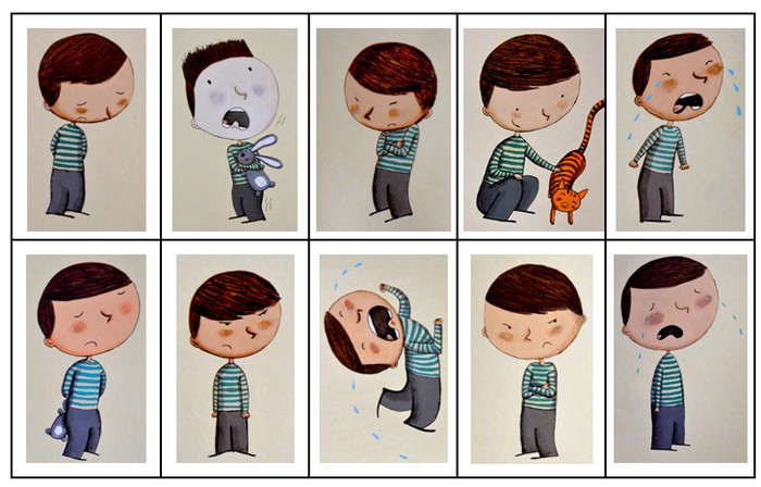 - Jeśli wyciągniesz kartę ze słowem, wymyśl krótką historyjkę ilustrującą sytuację, kiedy możesz tak się czuć, i poproś drugą osobę, żeby zgadła, o jakie ci chodzi uczucie. Powiedzmy, że napis brzmi: smutek. Możesz wtedy opowiedzieć o tym, jak zginęła ci ulubiona zabawka.