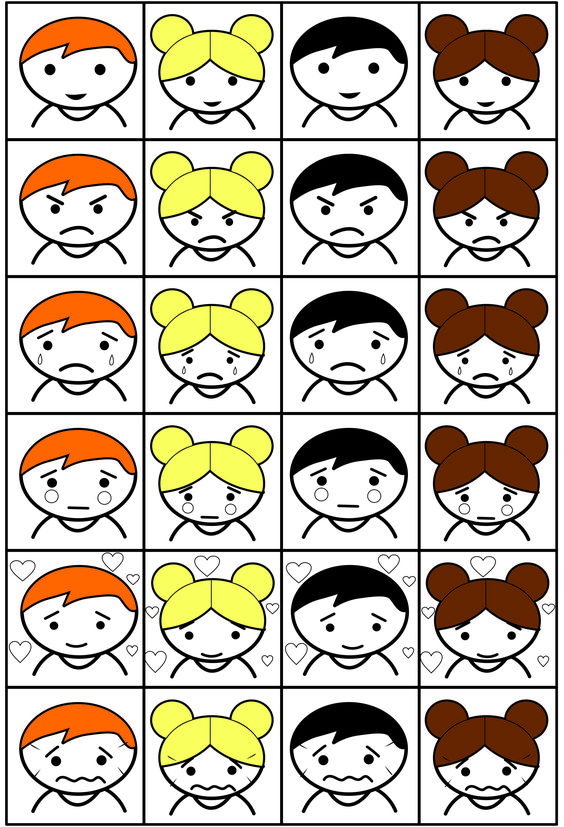 - Nauczyciel rozdaje karty z emocjami i prosi dzieci, aby odnalazły inne dzieci z taką samą emocją.