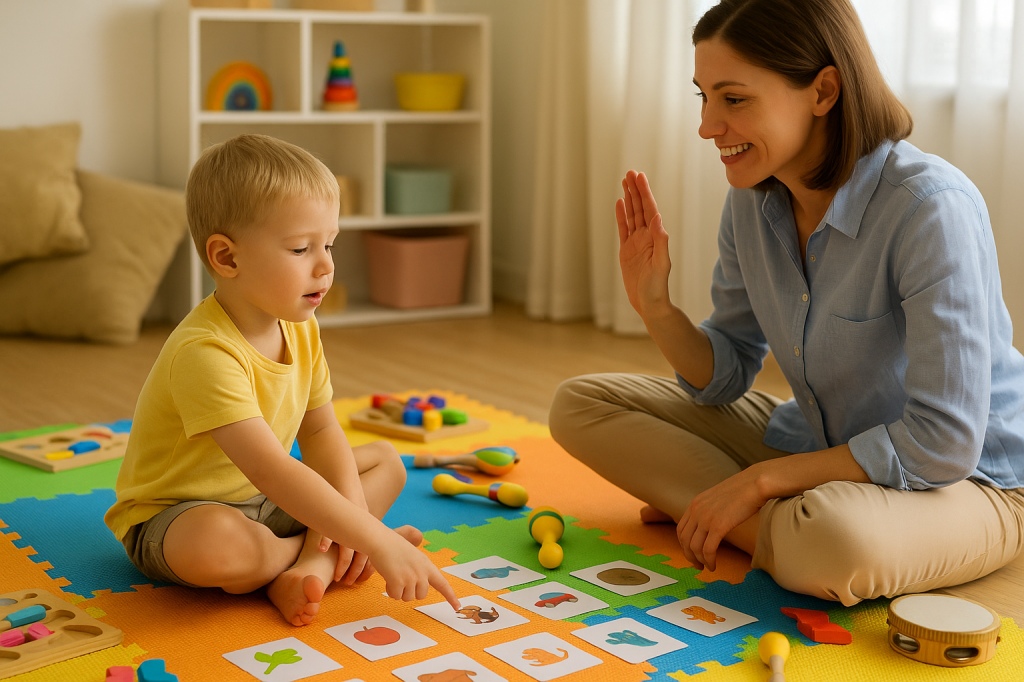 - Zabawy rytmiczno‑muzyczne – np. śpiewanie krótkich piosenek, rytmizowane powtarzanie słów, co aktywizuje oba półkule mózgu smart-sens.org.