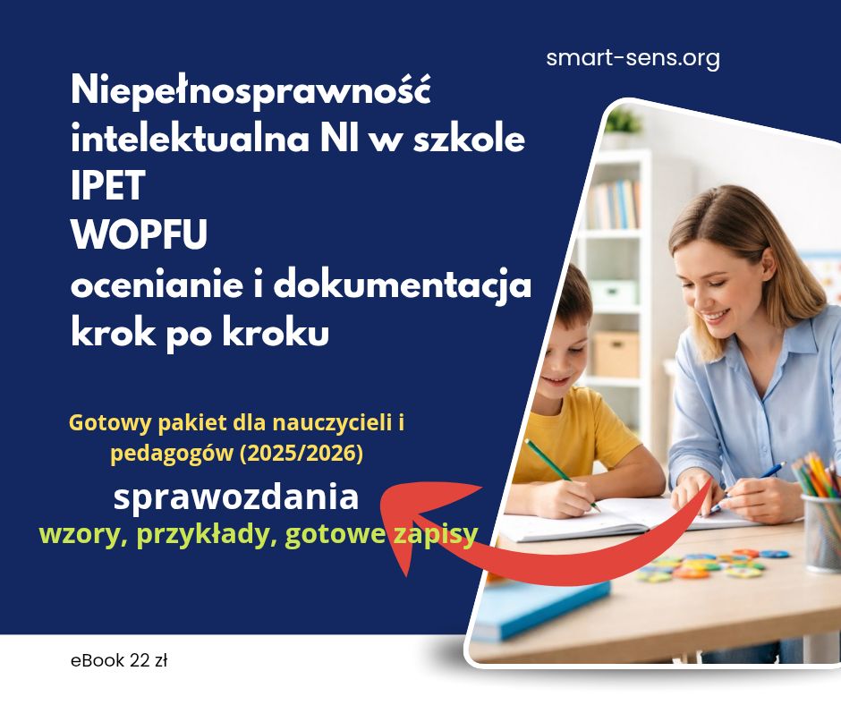 Niepełnosprawność intelektualna w szkole – praktyczny eBook dla nauczycieli. IPET, WOPFU, ocenianie, sprawozdania, PPP i gotowe zapisy bez stygmatyzacji. Aktualne wytyczne 2025/2026.